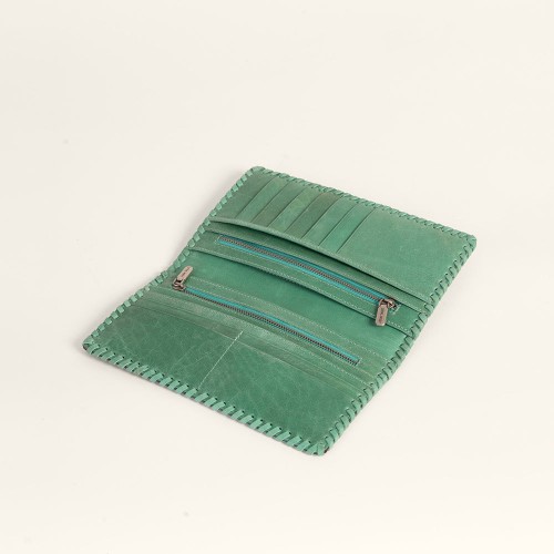 Crafted from premium calfskin, the Desert Lotus Wallet showcases intricate hand-tooled detailing, reflecting expert artistry. The vibrant turquoise hue adds a bold, elegant touch, while its durable design ensures lasting style and functionality.