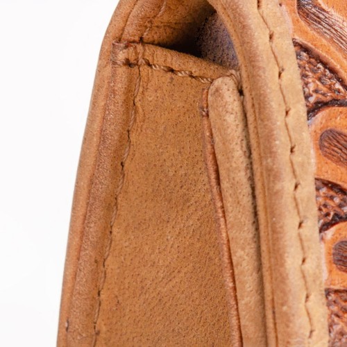 The Gloriana Clip-On Bag Charm brings intricate craftsmanship and elegance to your accessories. Made from premium hand-tooled calfskin, it features a full handtooled design, adding a detailed, artisanal touch. Shaped like a miniature bag, this small charm is perfect for clipping onto your bag or keychain, offering a stylish and personalized accent. With its finely crafted design, the Gloriana Bag Charm adds a sophisticated touch of Western-inspired artistry to any look.