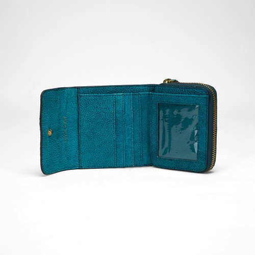 The Sophia Card Holder in hand-finished embossed leather adds a vibrant, textured touch to your essentials. Crafted from premium turquoise embossed leather, the sleek design offers a stylish and functional way to carry your cards while making a bold statement.