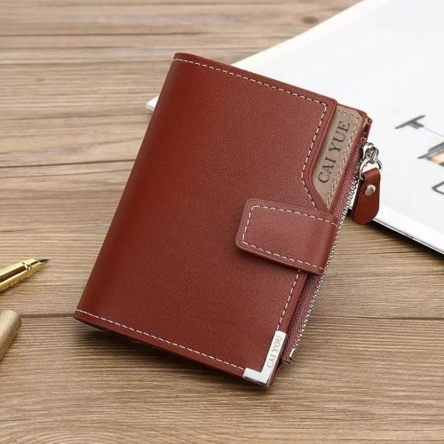 Luxury Short Men Tri- Fold Wallets PU Leather with Zipper Coin Purse Multifunctional Buckle Photo Card Holder Man Purses Wallet