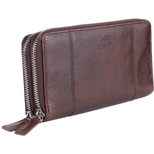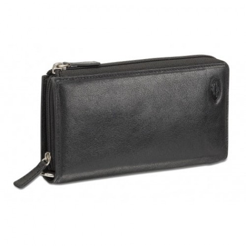 This versatile clutch wallet’s features numerous slots and pockets to keep all your cards, I.D.s, tickets and receipts organized. The middle features a large coin pockets. This fine leather wallet exudes classic elegance.