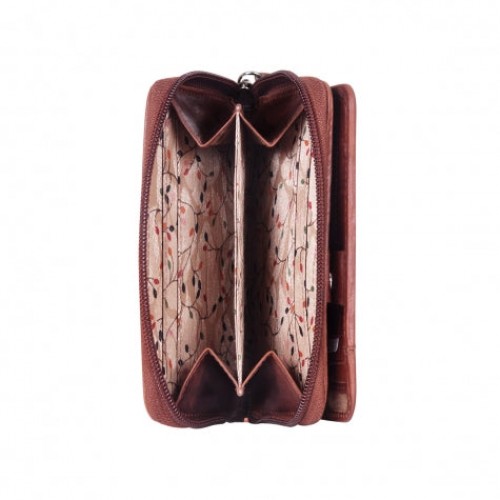 This unique clutch features multiple slots and sections to keep your cards, I.D.s, tickets and receipts organized, as well as a convenient zippered coinpurse pocket. The contents are kept secure by a snap closure.