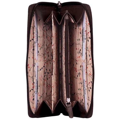 This versatile clutch wallet features multiple pockets, an abundance of credit card slots as well as a handy zippered pocket on the back. The contents are kept secure by a full zipper closure.