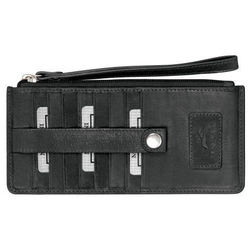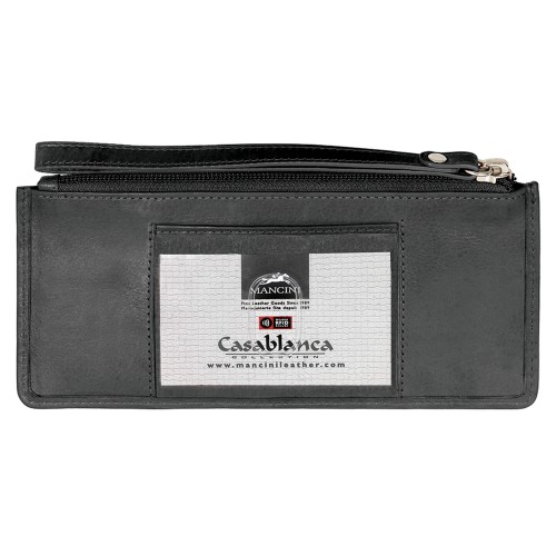 This unique “Wristlet” wallet features a zippered pocket to keep contents secure as well as multiple card slots.
