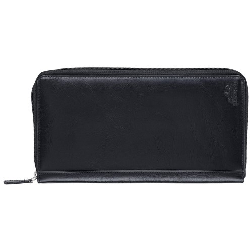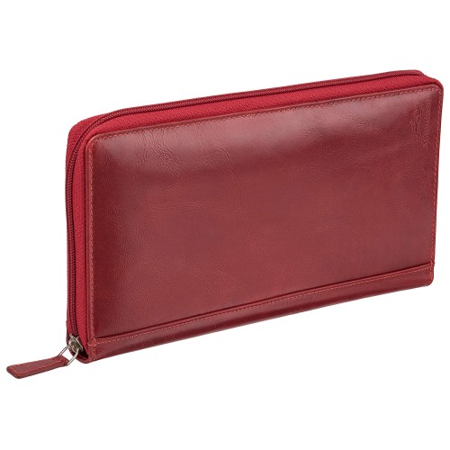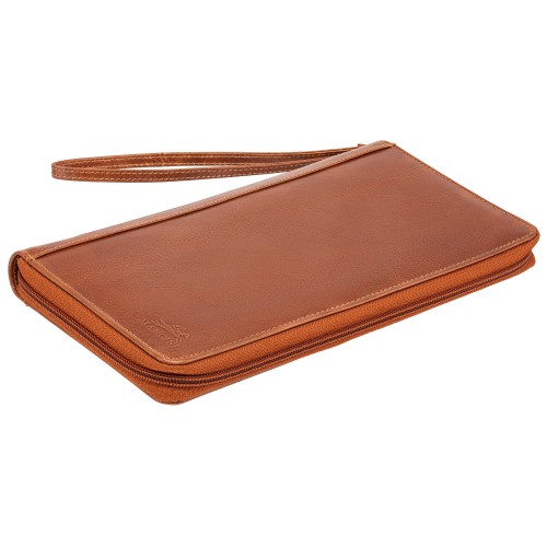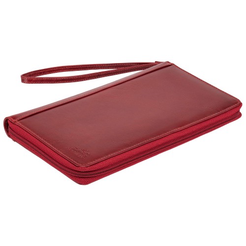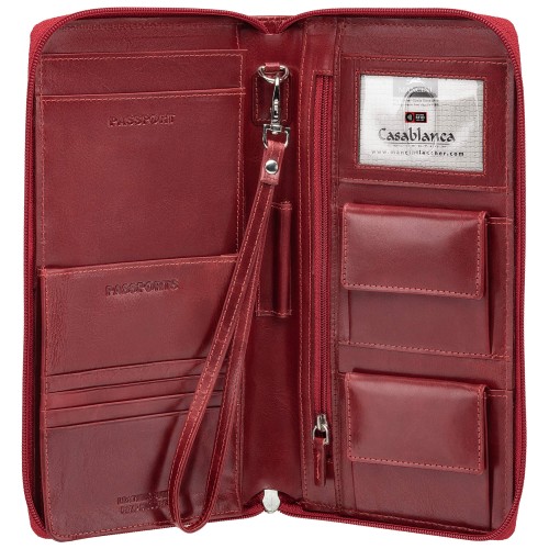 This luxury organizer features multiple compartments for your passport, tickets, travel documents, credit cards, and more. It includes two coin pouches and a detachable strap, all secured by a zipper.