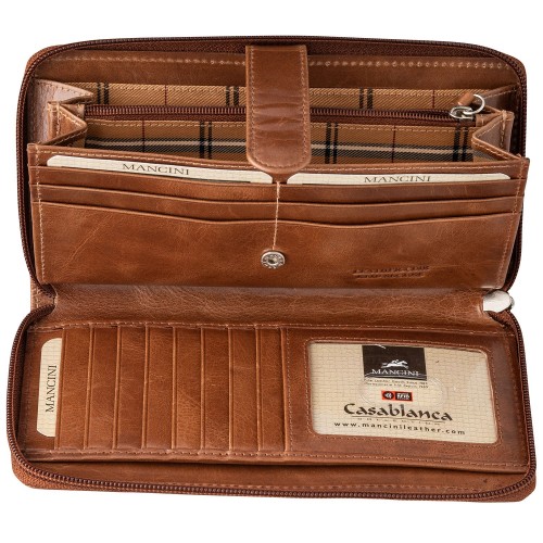 This medium-sized wallet features a divided coin pocket and multiple credit card slots, secured by a snap-button strap. Equipped with the latest RFID-blocking technology, it ensures the safety of your data and cards.