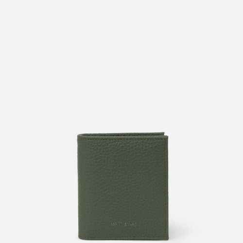 Men’s folded wallet with a card slot at exterior back.