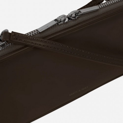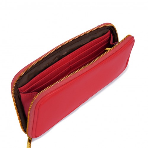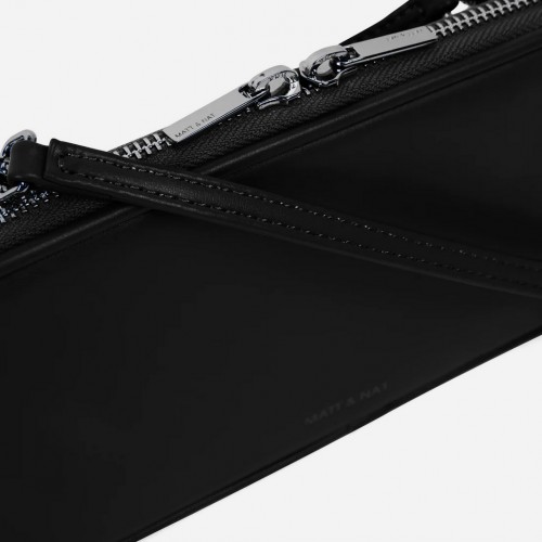 Wallet crossbody bag with a detachable strap, 2-way zip closure all around, and a back slip pocket with snap closure. Fits an iPhone 13 Pro Max.