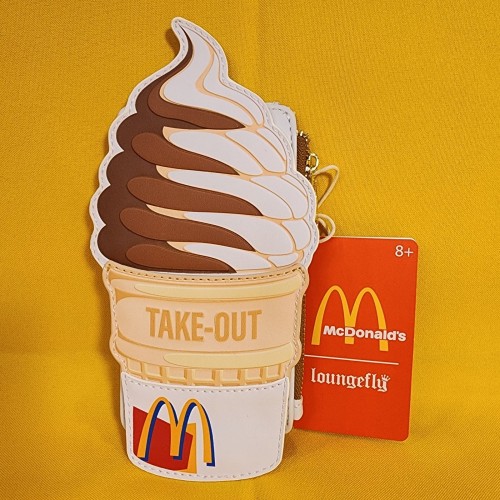 On your way to grab soft serve from McDonald’s? Naturally, you have to bring this figural cardholder shaped like a chocolate-vanilla swirl cone! This cardholder has an epic applique of a soft serve cone on one side, a zippered pocket and card slots on the back.