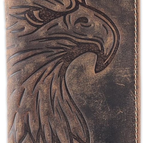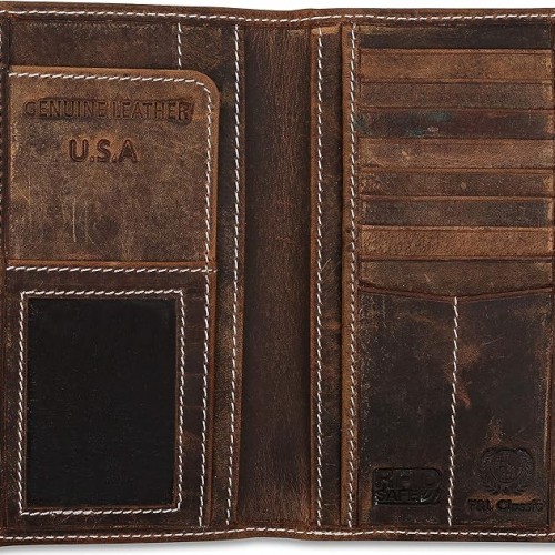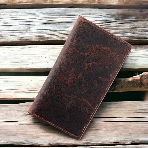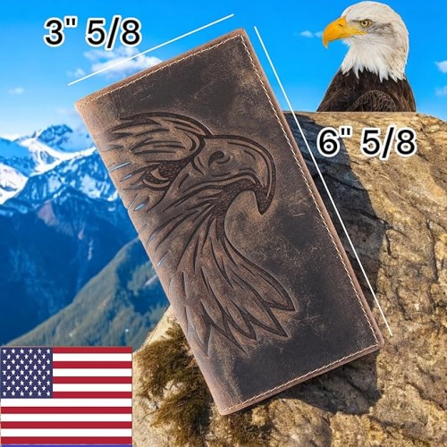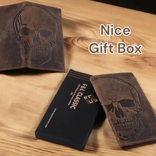 Men’s RFID Vintage Look Genuine Leather Long Bifold Wallet Checkbook Wallets,buffalo wax leather,classic brown skull,240-120