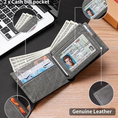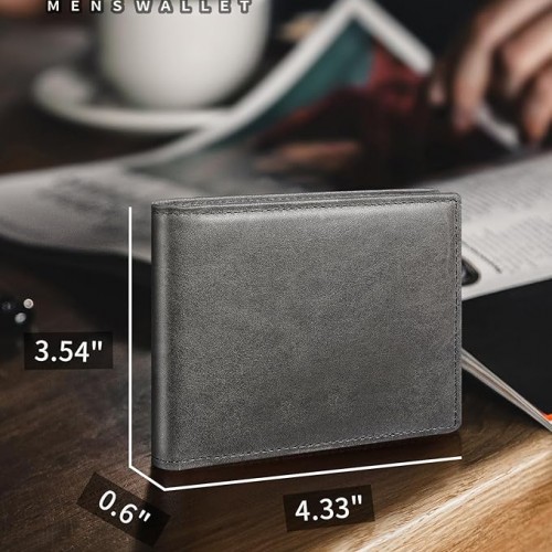 - GENUINE LEATHER — This men’s wallet is made of high-quality top-grain leather, which is water- and abrasion-resistant. The leather will become softer with use, making it easier to insert and remove cards, and ages beautifully with time.