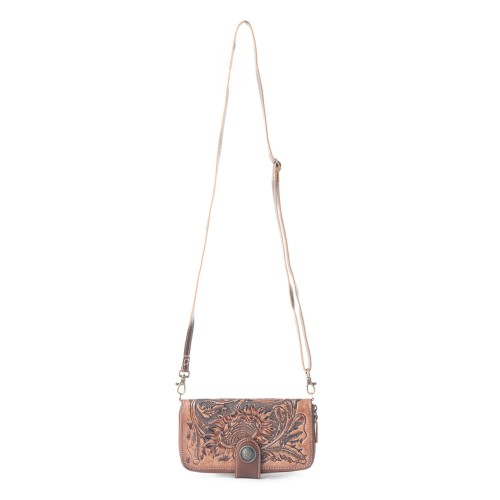 Make a unique addition to your wardrobe with our freckled wallet. The phone pocket shuts with a flap and zippered compartment will keep your belongings safe.