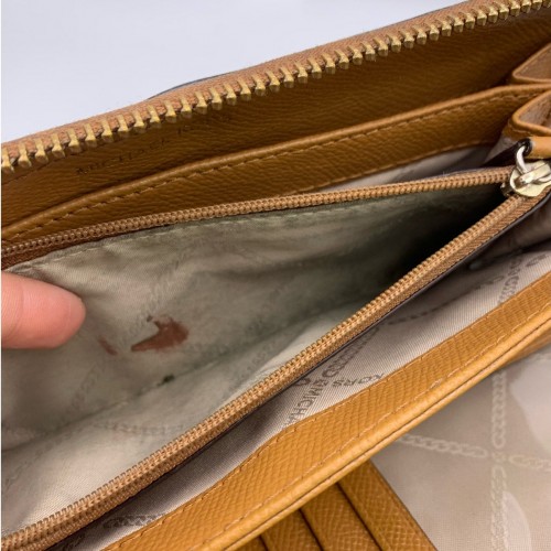 Preloved in good condition with normal wear on the exterior and interior. Please see all pictures. The exterior fabric has wear. The interior has marks near the id slot and card slots. The coin sections has wear. All wear can be seen in pictures. This is a pre-owned, ready to be used.