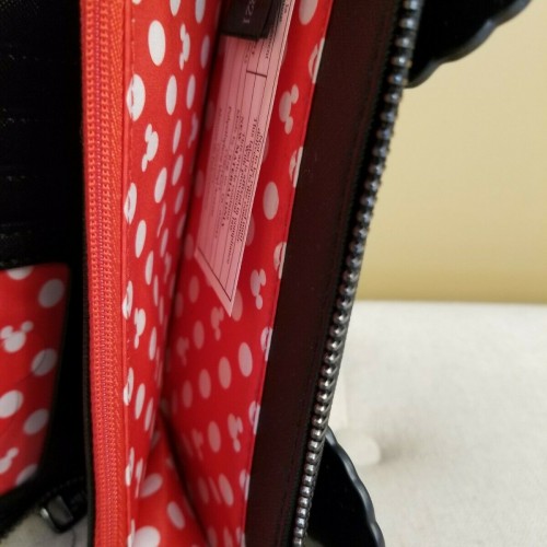* Interior is Black Faux Leather and Red Polka Dot Mickey Print Fabric