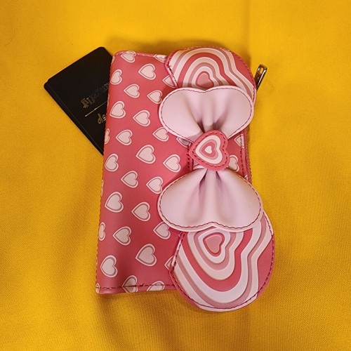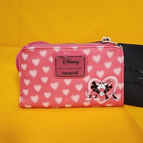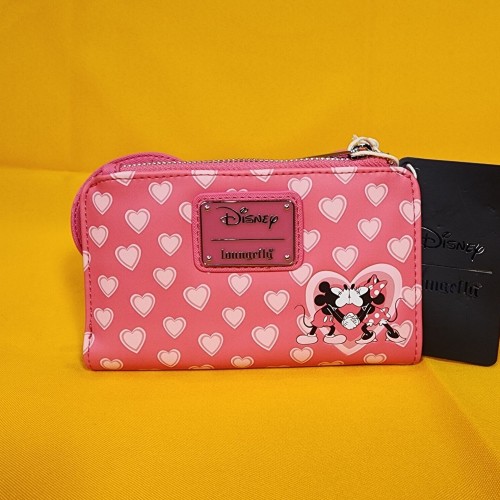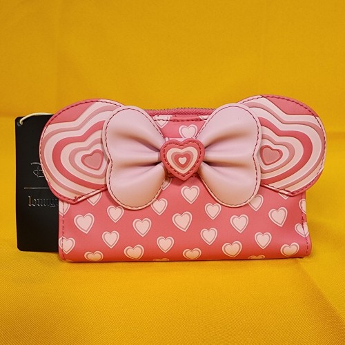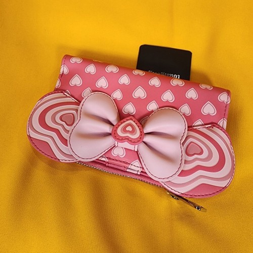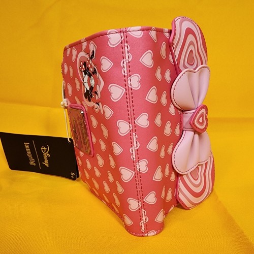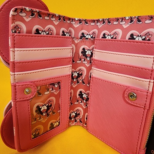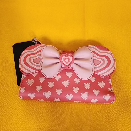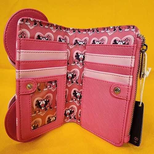 Bring a bit of love to your look with this Disney wallet! Featuring applique Minnie ears and a bow on the front, this wallet includes an allover print of hearts.