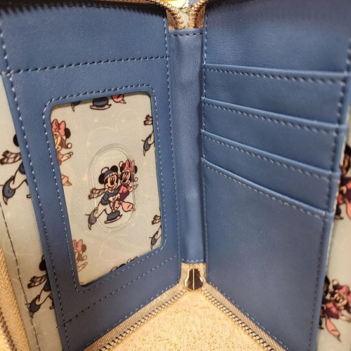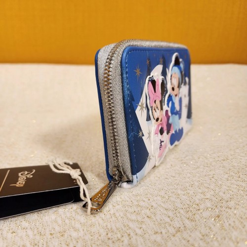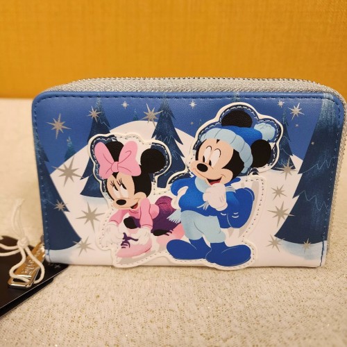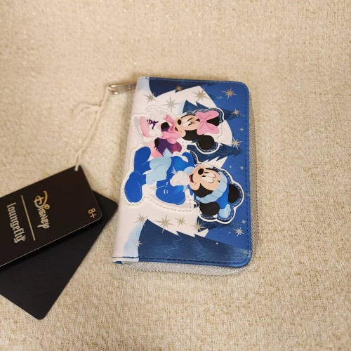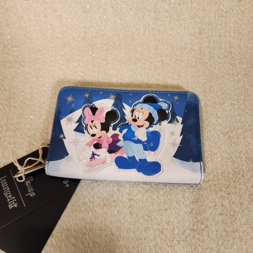 Mickey Minnie Mouse Winter Scene Ice Skating Zip Around Wallet