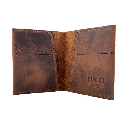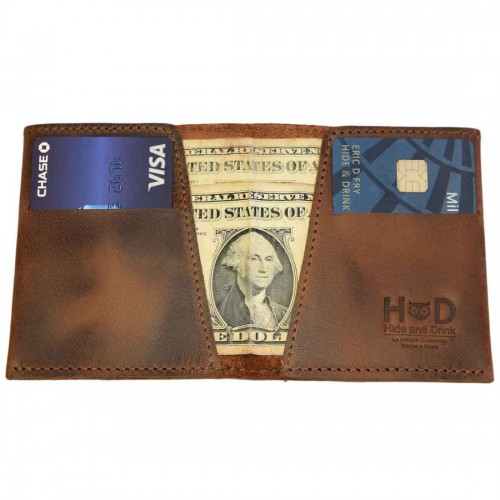 - DURABLE DESIGN: This wallet is guaranteed to last a lifetime! With its thick leather construction and fold-over configuration, Hide & Drink guarantees the safety of everything you store inside of it. This wallet can hold both bills and cards inside of its classically simple design. The Full-Grain Leather that is synonymous with Hide & Drink is both rustic and gorgeous in its minimalistic presentation. This wallet is sure to stay in style for as long as it is guaranteed to last!