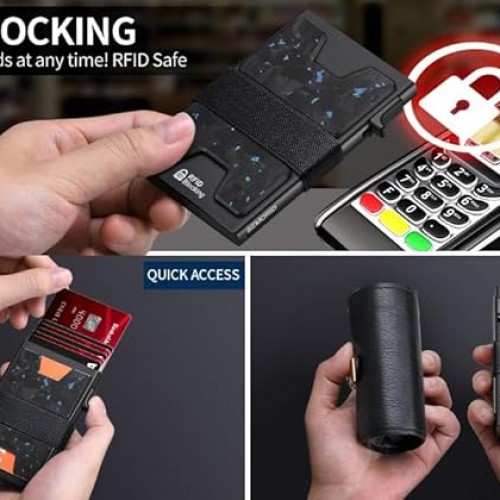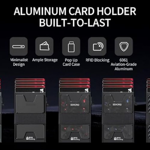 Minimalist Wallet for Men, Slim RFID Blocking Mens Wallet, Aluminum Pop Up Card Case, Thin Metal Credit Card Holder with Cash Strap -12 Cards Storage