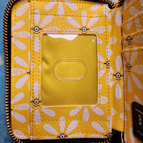 Awesome Minions Wallet. It has a all around zipper closure with slots for credit cards and an ID slot. It is great for everyday use.