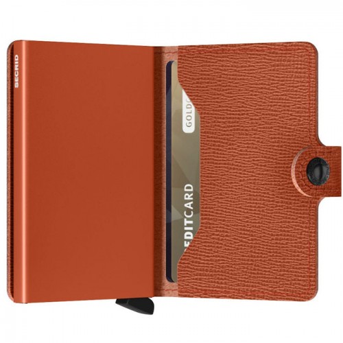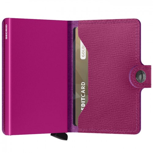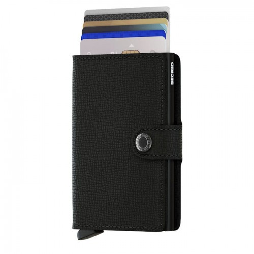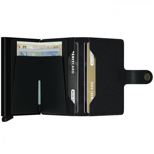 The Miniwallet Crisple has a Fine Saffiano embossing, on European cowhide, made in the Netherlands. Small in size and surprisingly large in storage capacity, the Miniwallet combines the best of both worlds. The exterior holds banknotes, receipt and cards, while the aluminum card protector allows you to slide out cards with one simple motion and protects them from bending, breaking and unwanted wireless communication. Holds: