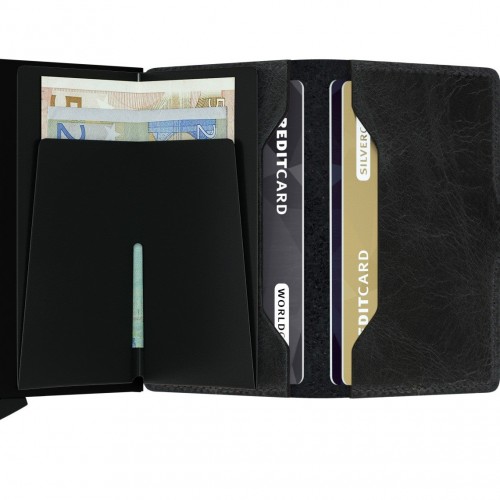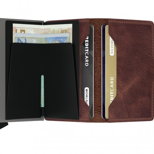Secrid Miniwallet Vintage has a carefully abraded surface and wax finish that gives it a stonewash look. It’s more sensitive to scratches, making the leather more personal over time.