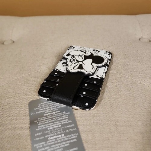 Given Minnie’s roots as a black and white movie star, it’s fitting that this card wallet features a monochrome design Ready to carry your cards and cash in Style like Her! Make this the perfect gift for that special someone… or just treat yourself!
