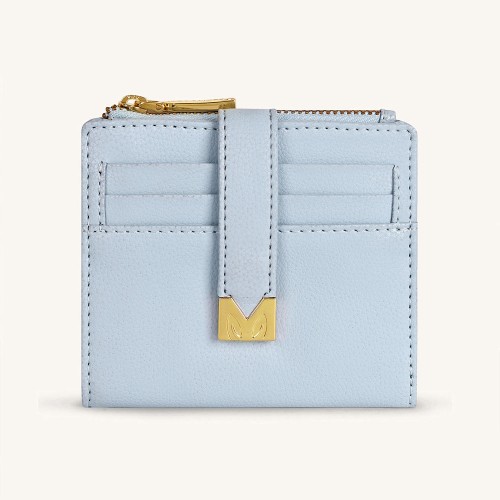 Discover refined organization with the sophisticated Regina Compact Wallet. Crafted from premium vegan leather, this elegant piece features a sleek bifold design with an iconic leaf-embossed medallion clasp. The thoughtfully designed interior offers multiple card slots and a secure bill compartment with RFID Protection. Perfect for the modern minimalist, the Regina Compact Wallet combines luxurious details with essential functionality, making it an ideal everyday companion. Available in – Black, Ice Blue, Light Taupe, and Future Dusk.