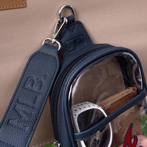 Officially Licensed Major League Baseball Merchandise.Go to games in style with these new Clear Stadium Sling Bags! The strap connects to either side of the bag with your favorite teams full color logo on it.