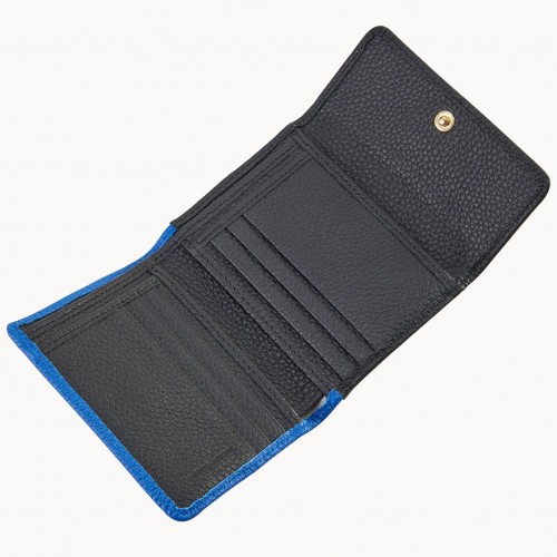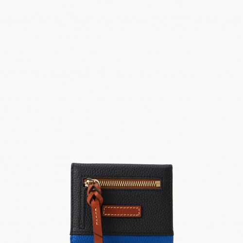 One outside zip pocket. One bill compartment. Four inside pockets. Six credit card slots. Snap closure.