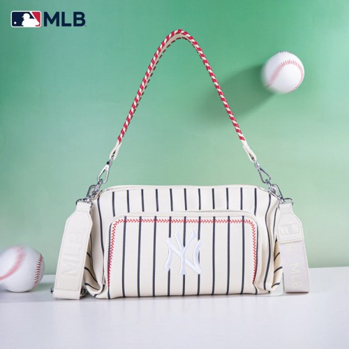 - Adjustable/detachable MLB logo print canvas crossbody strap