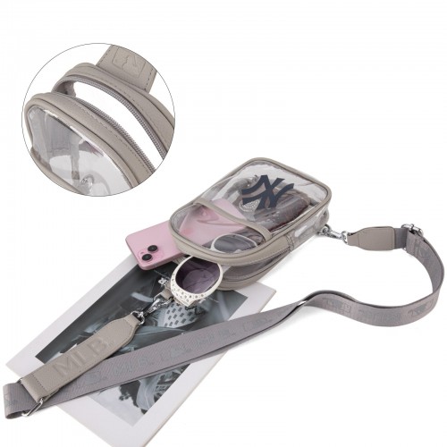 Made of premium transparent PVC and PU leather trimmed , this sling bag has: