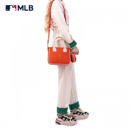 - Detachable/adjustable MLB logo print canvas crossbody strap included