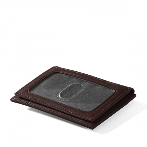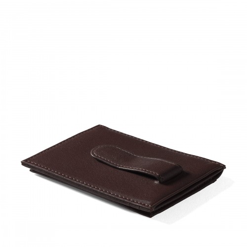 Designed to combine the best of a money clip and a card wallet, the Money Clip Card Holder keeps essentials organized in a slim, easy-to-carry profile. A leather-wrapped metal money clip is paired with a compact bifold layout to hold cards, cash, and ID in one place. Ideal for those who like to carry a little of everything without unnecessary bulk.