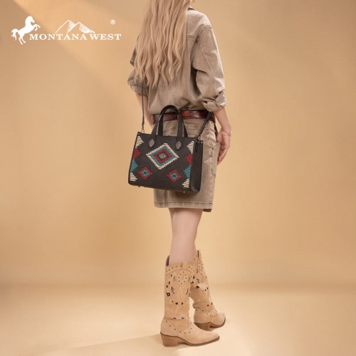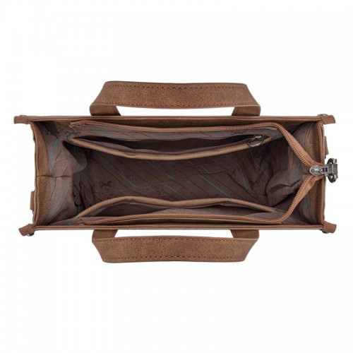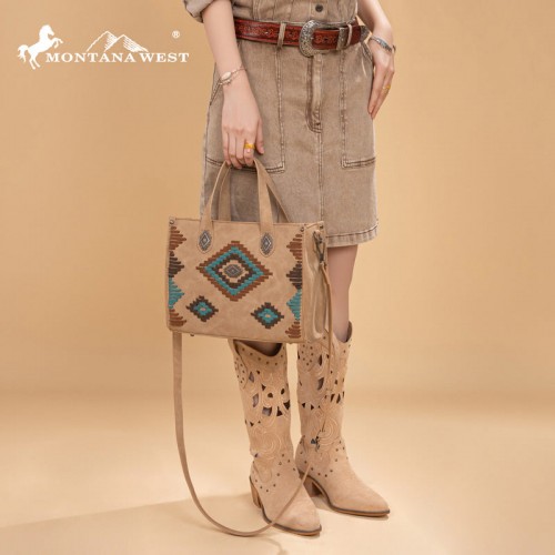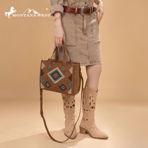 Made of PU leather (seude-like), this western tote/crossbody has: