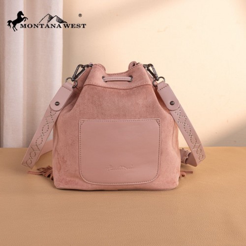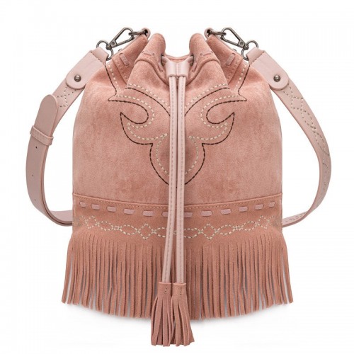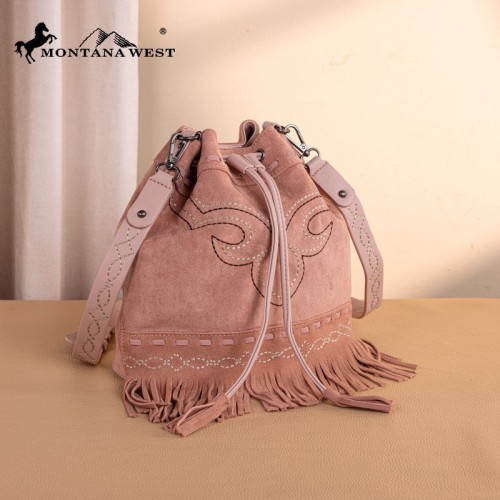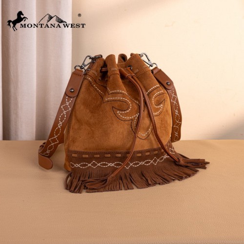 Montana West Boot Stitch Fringe Drawstring Crossbody Bag