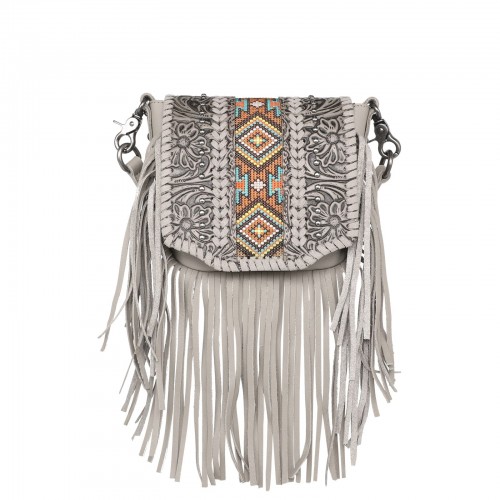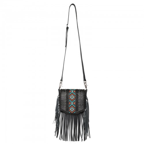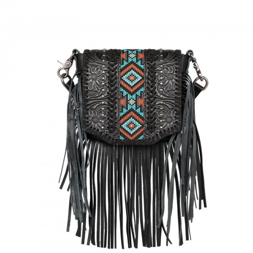 - Floral tooled pattern and Aztec embroidery on the flap with magnetic button closure
