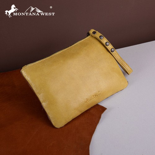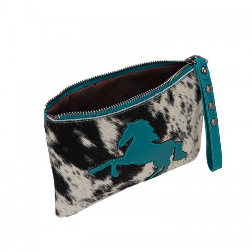 Made of leather and genuine hair-on cowhide this wristlet has:
