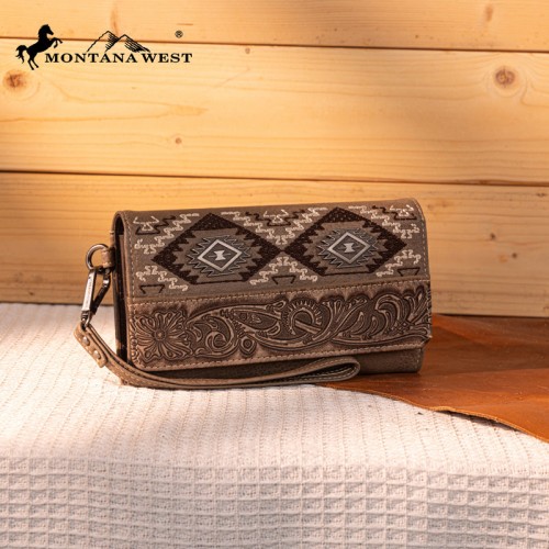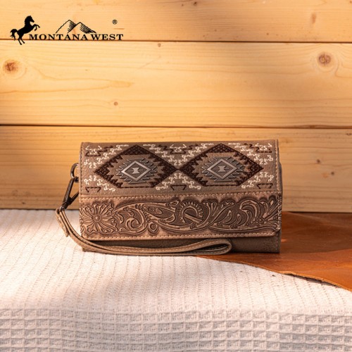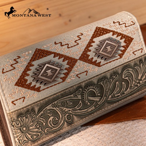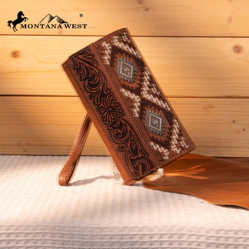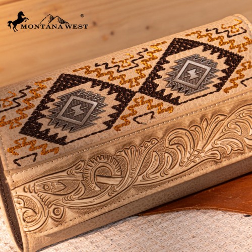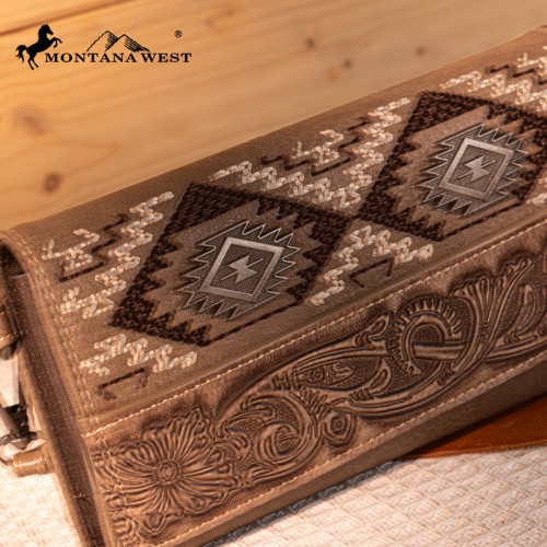- Floral tooled and embroidered tribal pattern