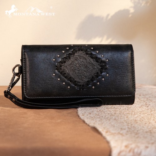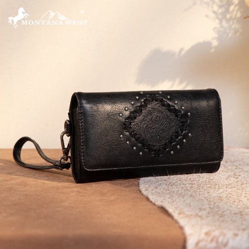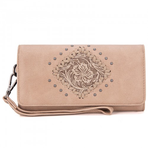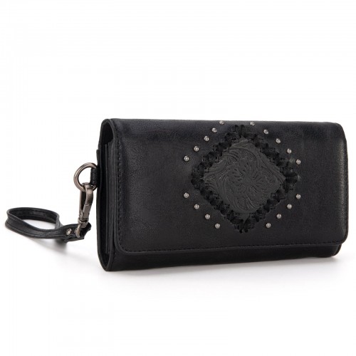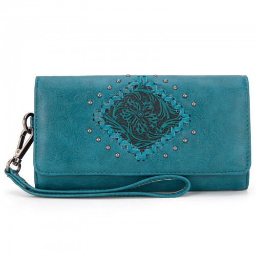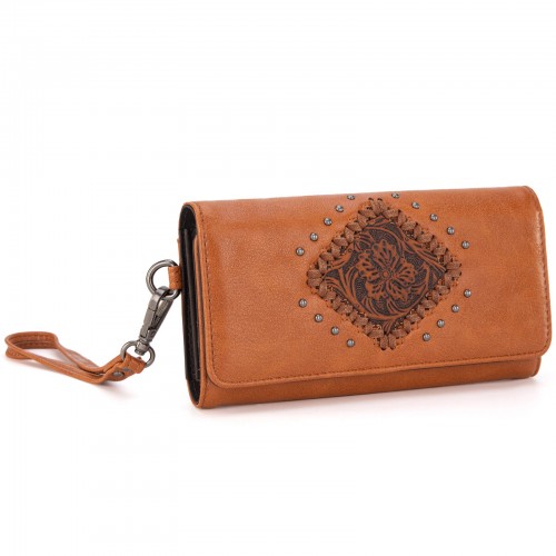 - Floral tooled outlined with antique silver embellishments