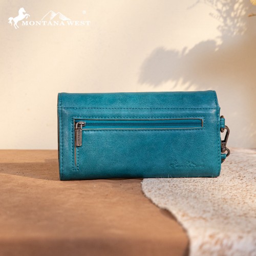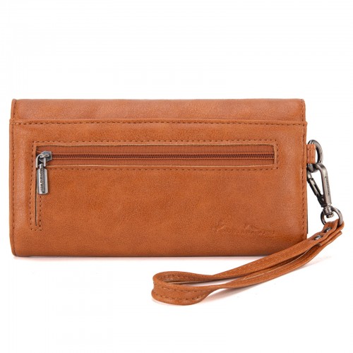 Made of PU leather, this western wallet has: