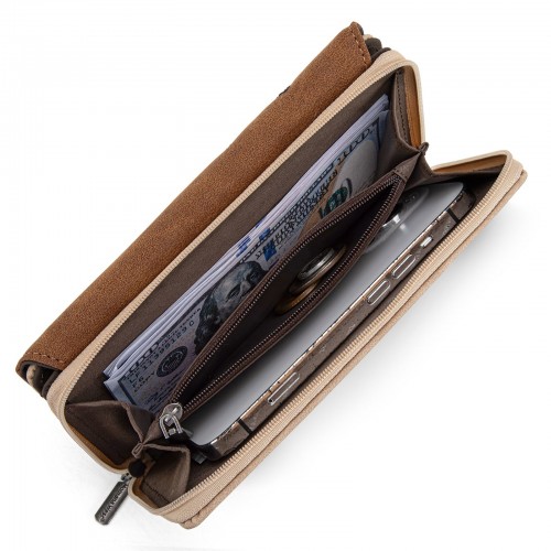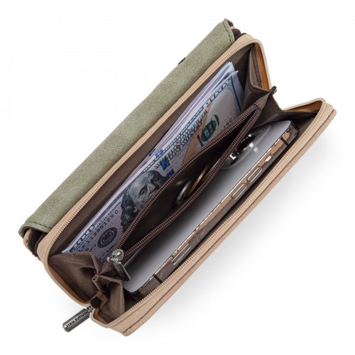 Made of PU Leather (suede-feel) this wallet has: