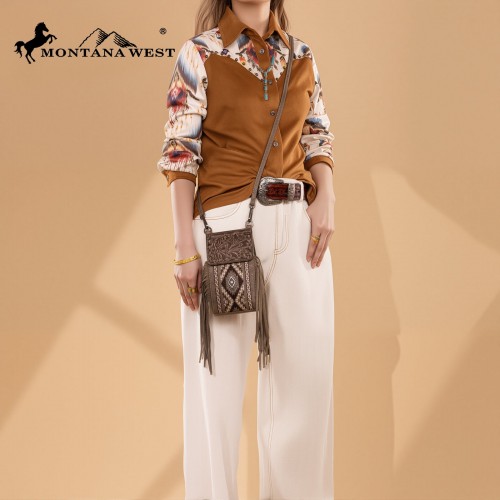 - Floral tooled on the flap with magnetic button closure