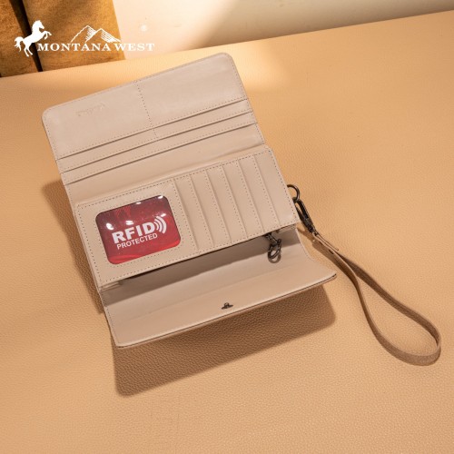 Made of PU leather (distressed), this western wallet has:
