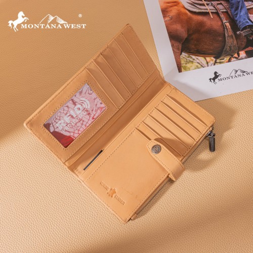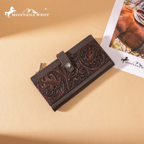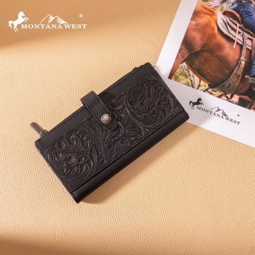 MWL-4210 Montana West Genuine Leather Floral Tooled Bi-Fold Wallet