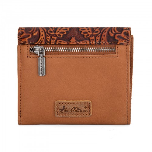 Made of Genuine Leather, this tri-fold RFID wallet has: