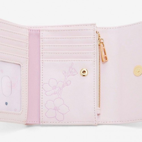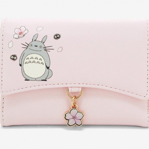 Your look will be wonderfully whimsical with this My Neighbor Totoro wallet! With lush prints of Totoro and Soot Sprites amid cherry blossom details, this pink wallet is accented with an enamel flower charm for extra style. With a back pouch, seven card slots, a bills compartment, and a clear ID sleeve, there’s plenty of space for your valuables. Don’t miss the matching tote sold separately!