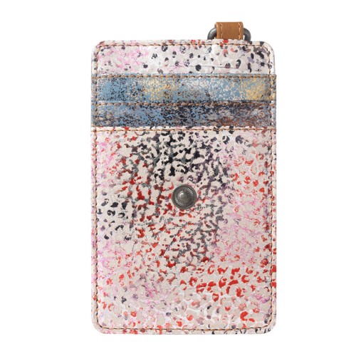 Downsize your daily carry with this highly practical leather credit card holder. This slim accessory features a unique metallic pattern that adds a fun, textured look to your essentials. It’s the perfect size for keeping your cards and ID organized without any extra bulk. Though compact, this handy item provides a strong snap closure to keep everything secure. This versatile Western card holder easily fits into small purses or pockets, offering a streamlined, dependable solution for those who prefer to travel light.