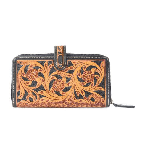 The Mysa Wallet is a timeless blend of elegance and functionality, perfect for those who love cowgirl wallets with a touch of artistry. Featuring a beautifully hand-tooled leather flap with an embossed design, this western leather wallet is both stylish and secure. Inside, you’ll find a zippered pocket, credit card compartments, and RFID protection for peace of mind. A must-have, it’s designed for everyday convenience with undeniable country charm.