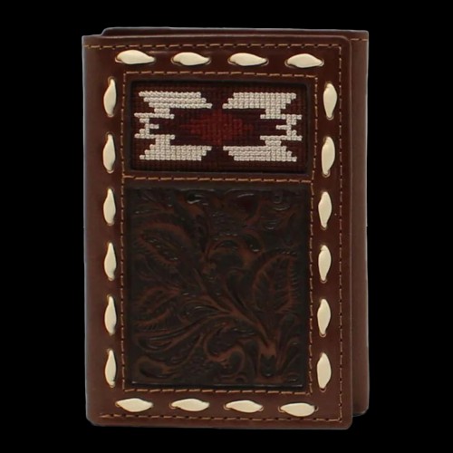 Nocona Men’s Trifold Floral Tooled Brown Leather Wallet N500016002