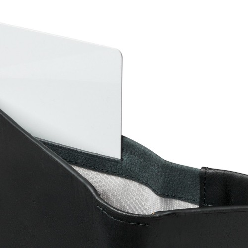 The spacious yet slim Note Sleeve all-rounder wallet now upgraded with innovative leather and custom finishing details. Quick-access slots prioritize your most frequently used cards, so they’re where you need them, when you need them. A delightfully textured pull-tab gives you easy access to infrequently used cards, and feels great to the touch. The note section fits all bill sizes, and features a slim coin slot with flap closure, for coin-friendly currencies. While fully recyclable, the packaging is handsome enough that you might want to hang onto it to store small items.